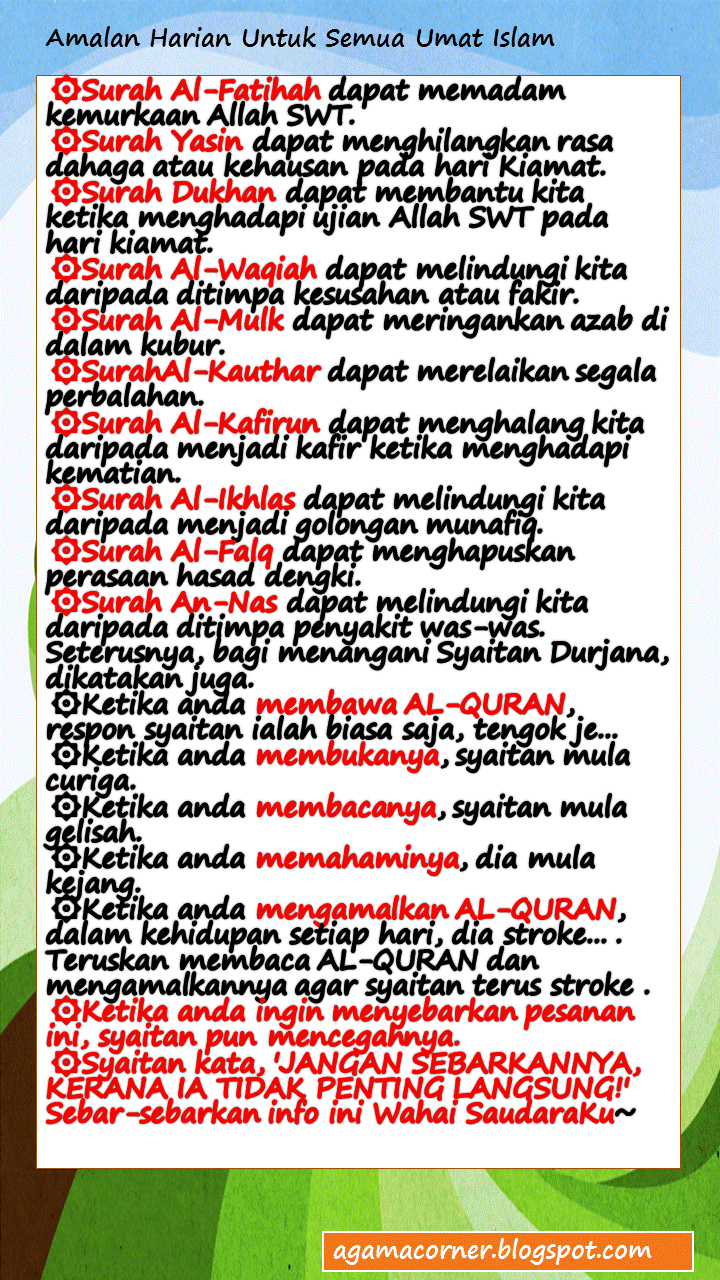 mendekatinya kalian akan dipengaruhinya". Setiap pagi Rasulullah SAW